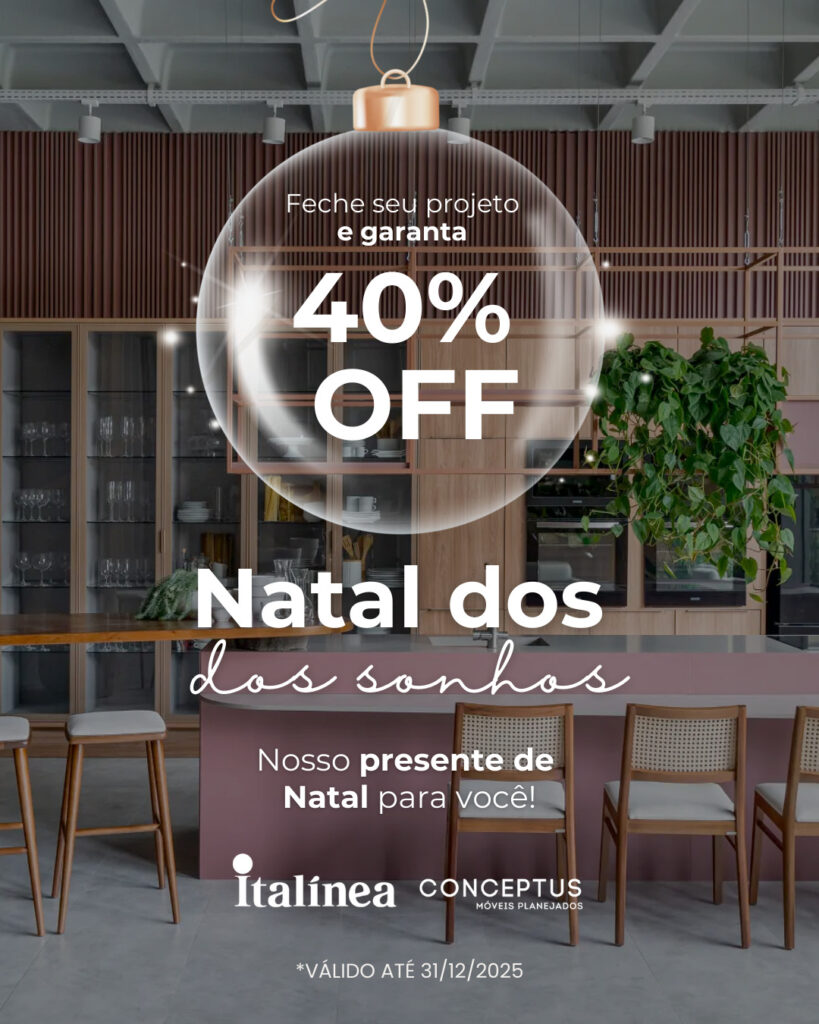 Uma oportunidade especial da Italínea para você realizar o sonho do seu projeto de móveis planejados. Toda comodidade de pagamento no prazo que você precisa e parcelas que cabem no seu orçamento.